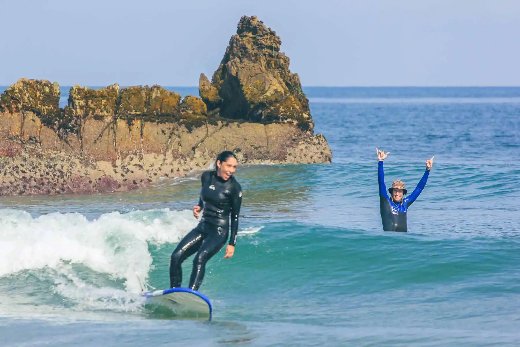 Our experienced, professional, patient and fluent english speaking Coach, will take you from the first steps to catch your first waves, improve your surfing and gain confidence in the water.